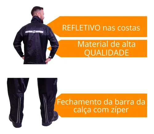 Conjunto / Capa de Chuva Motociclista / Motoqueiro / Motoboy Nylon Luxo.