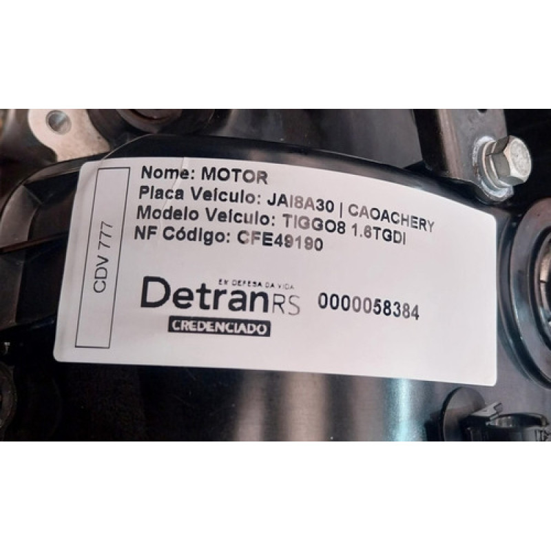 Motor Parcial Chery Tiggo 8 1.6 Turbo Gasolina 187cv