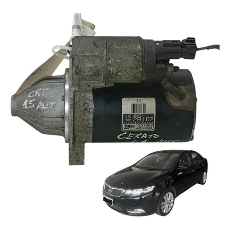 Motor de arranque original Kia utilizado na linha Cerato equipada com motorização 1.6. Componente responsável pelo acionamento inicial do motor do veículo, transmitindo movimento ao volante do motor através do pinhão no momento da partida. Peça proveniente de desmontagem, vendida exatamente conforme as fotos, com etiqueta original do fabricante e numerações identificadoras presentes na carcaça.